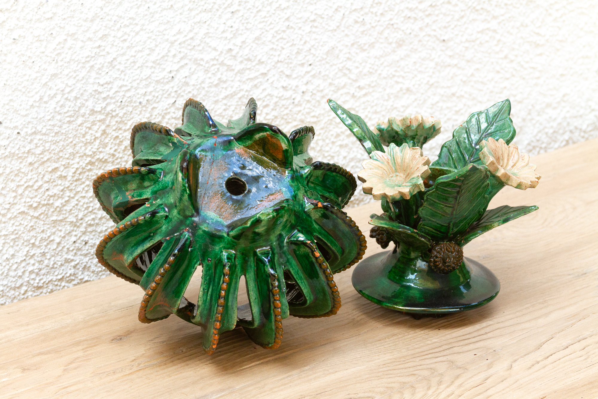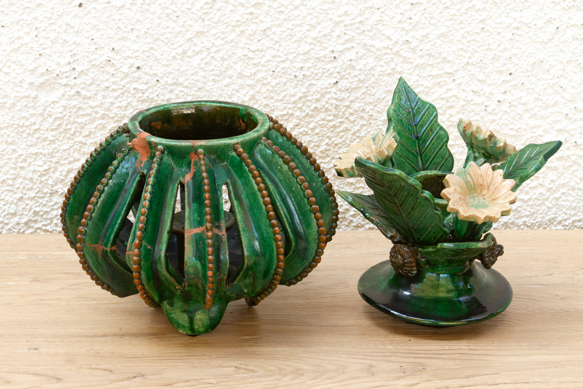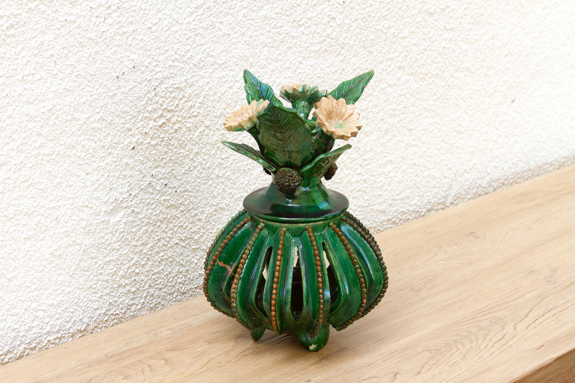 Vintage Green Glaze Michoac�����n Floral Jar