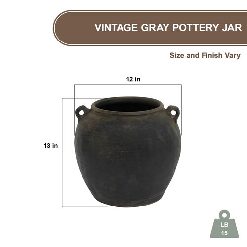 Vintage 12" Pottery Jar, Charcoal/Gray