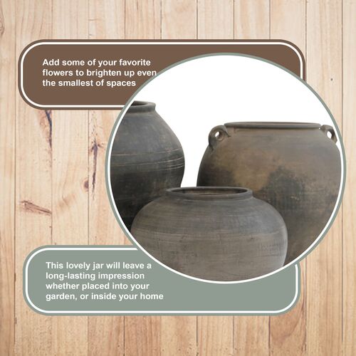 Vintage 14" Pottery Jar, Charcoal/Gray