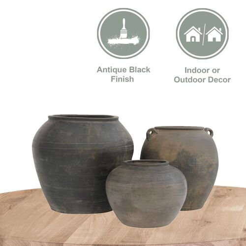 Vintage 8"W Indoor/Outdoor Pottery Jar, Black
