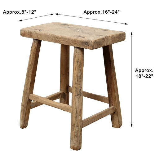 Vintage Rustic Rectangular Stool (Approx. 16–24" Wide & 8–12" Deep) w/ Thick Top, Weathered
