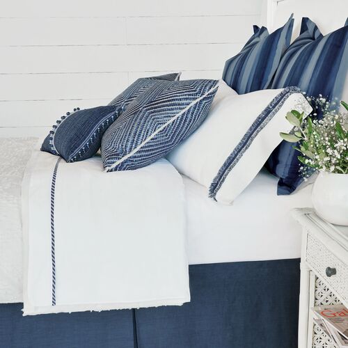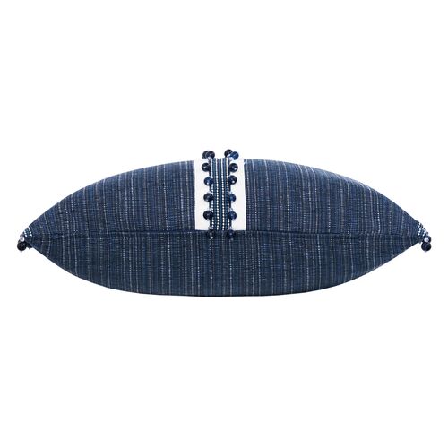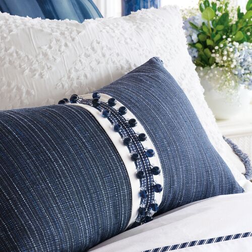 Isla Ball Trim Lumbar Pillow, Indigo/White