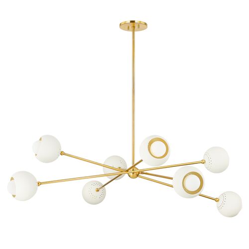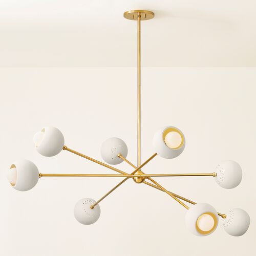 Wesson Globe Chandelier, Aged Brass/Soft Cream