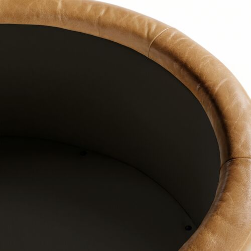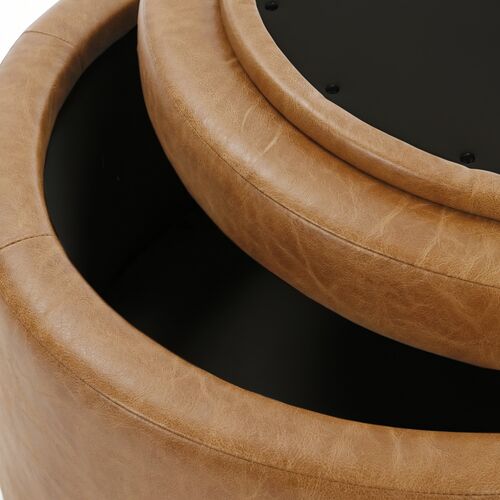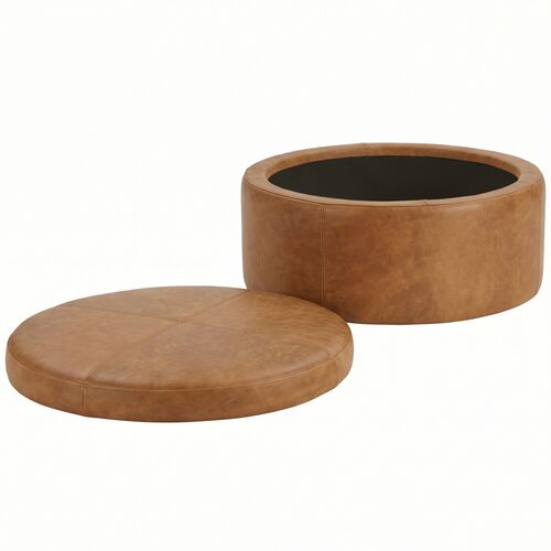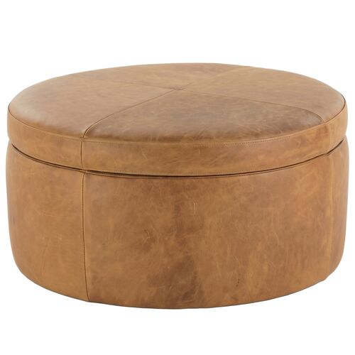 Whitford 36" Round Leather Storage Ottoman, Butterscotch
