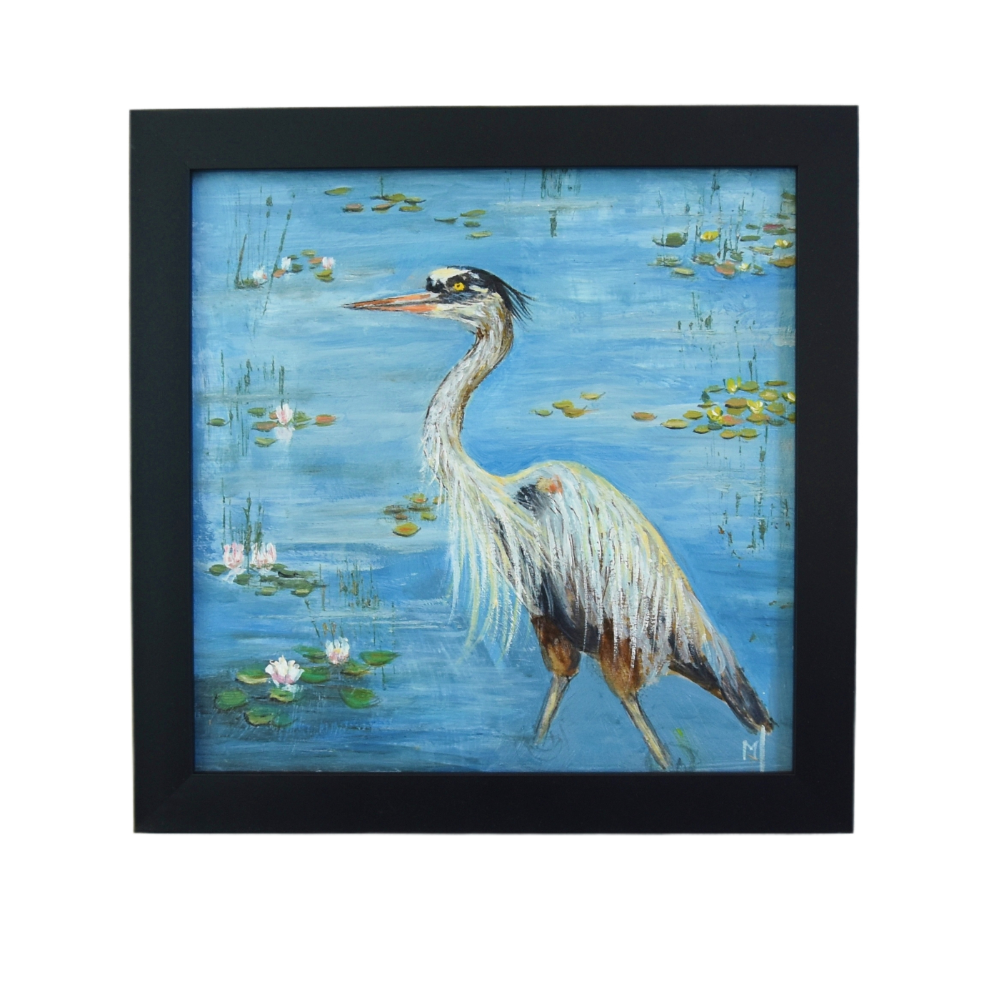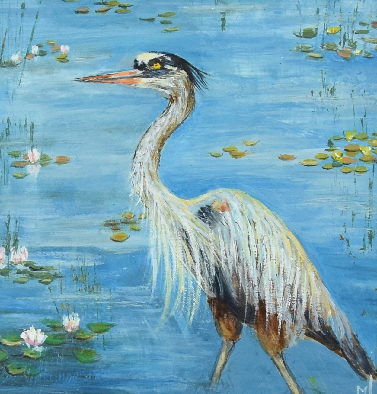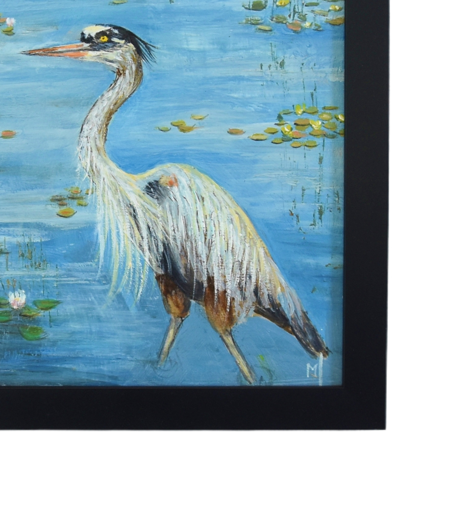 Wildlife Heron in Lake or Pond Painting