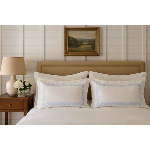 Hamburg House began 30 years ago by importing embroidered linens from Madeira, Portugal, an area renowned for its handcrafted embroidery. Since then it has become the largest producer of custom-embroidered linens in the United States, but its insistence on stellar artistry remains unchanged: Each piece is made to order and crafted using the finest artisan-woven Italian fabrics.