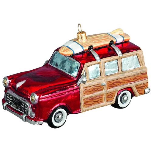 Woody Car w/ Skis Ornament, Navy/Multi