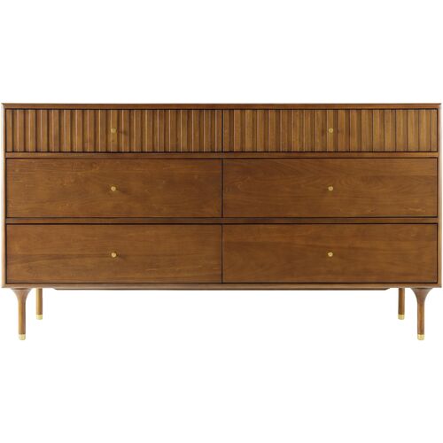 Fresno Fluted 6-Drawer Dresser, Terra Brown Oak