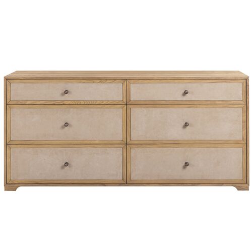 Yvarra 6-Drawer Dresser, Light Taupe Suede