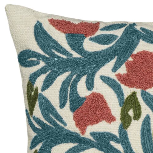 Zirra 20x20 Embroidered Floral Wool Pillow