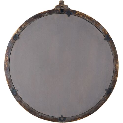 Percival 36" Round Antiqued Wall Mirror, Black
